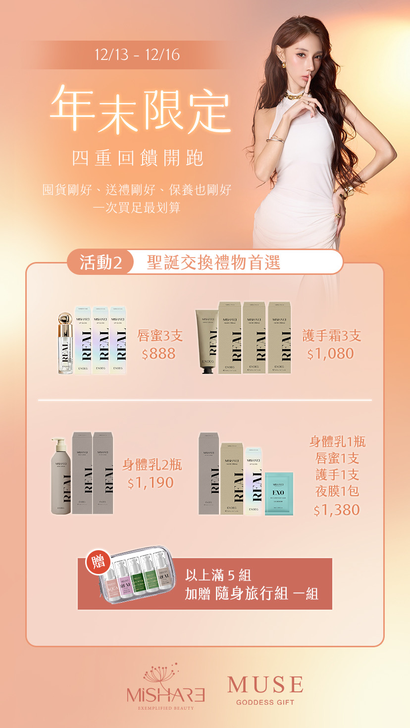 身體乳1瓶+唇蜜1支+護手1支+夜膜1包$1,380