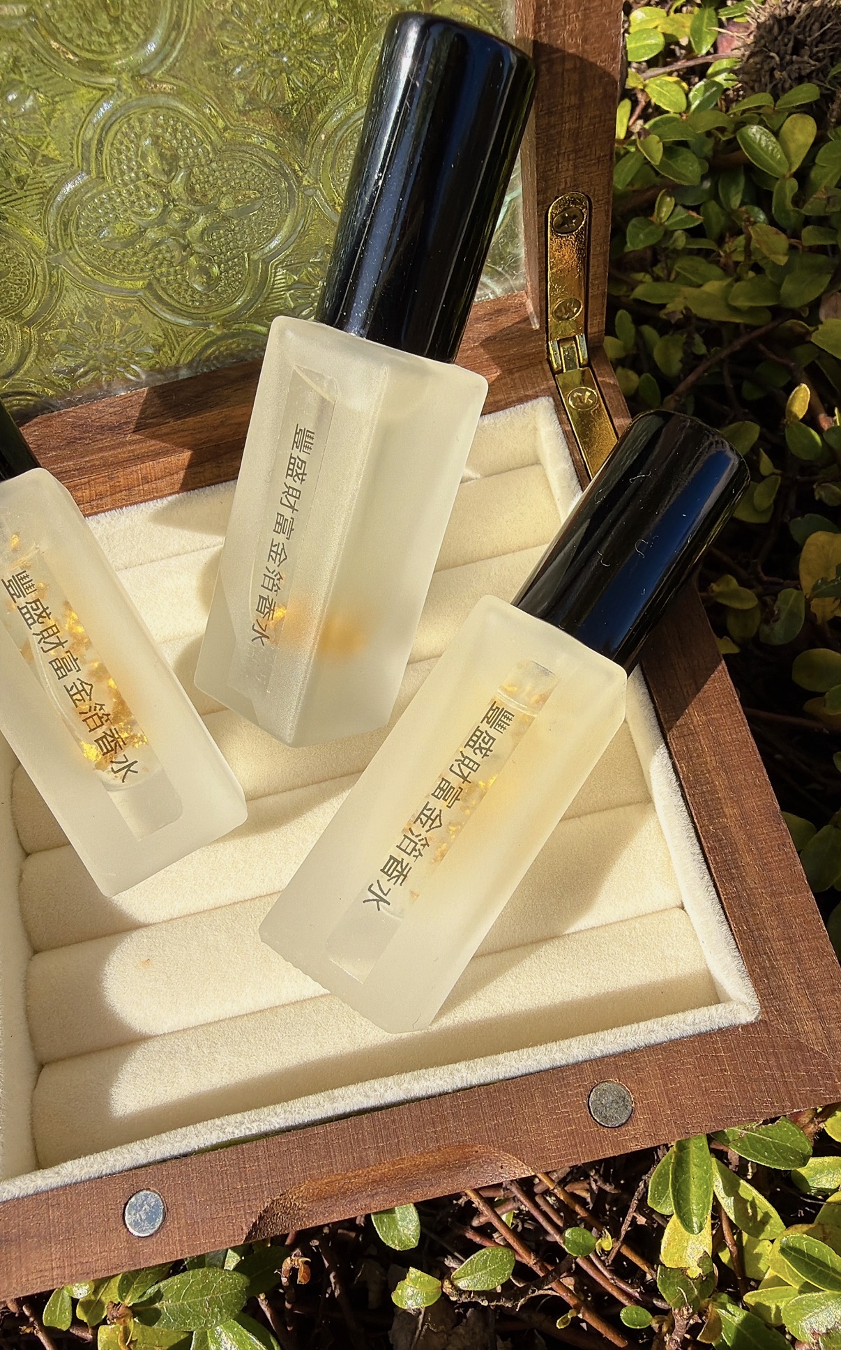 金箔在瓶中緩緩飄動,如同流動的財富能量